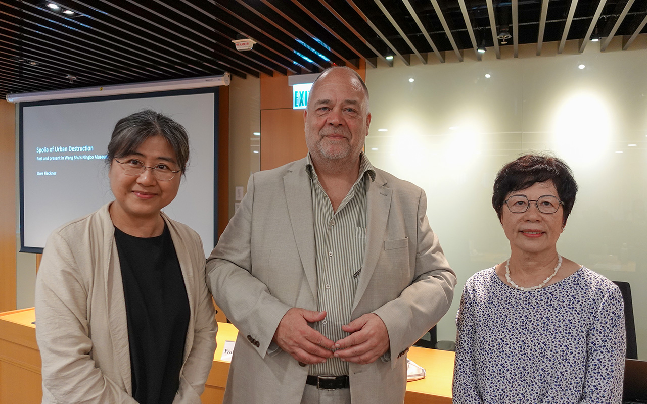 On September 13, Professor Uwe Fleckner (University of Hamburg/China Academy of Art, Hangzhou) delivered a public lecture at the Department of Chinese and History on Wang Shu's Ningbo Museum. Departing from the unique lens of "spolia," a key concept deeply rooted in European culture and visuality since antiquity, Professor Fleckner elaborated on how Wang Shu used recycled building materials to construct a public museum, which is, per se, a “lieu de mémoire” in the strict sense of Pierre Nora. Over 50 participants, including faculty, museum curators, B.A. and M.A. students, joined this event. The lecture was followed by insightful comments made by Professor Chiu Rebecca L.H. (University of Hong Kong and UCL London) and a vigorous exchange among the audience.