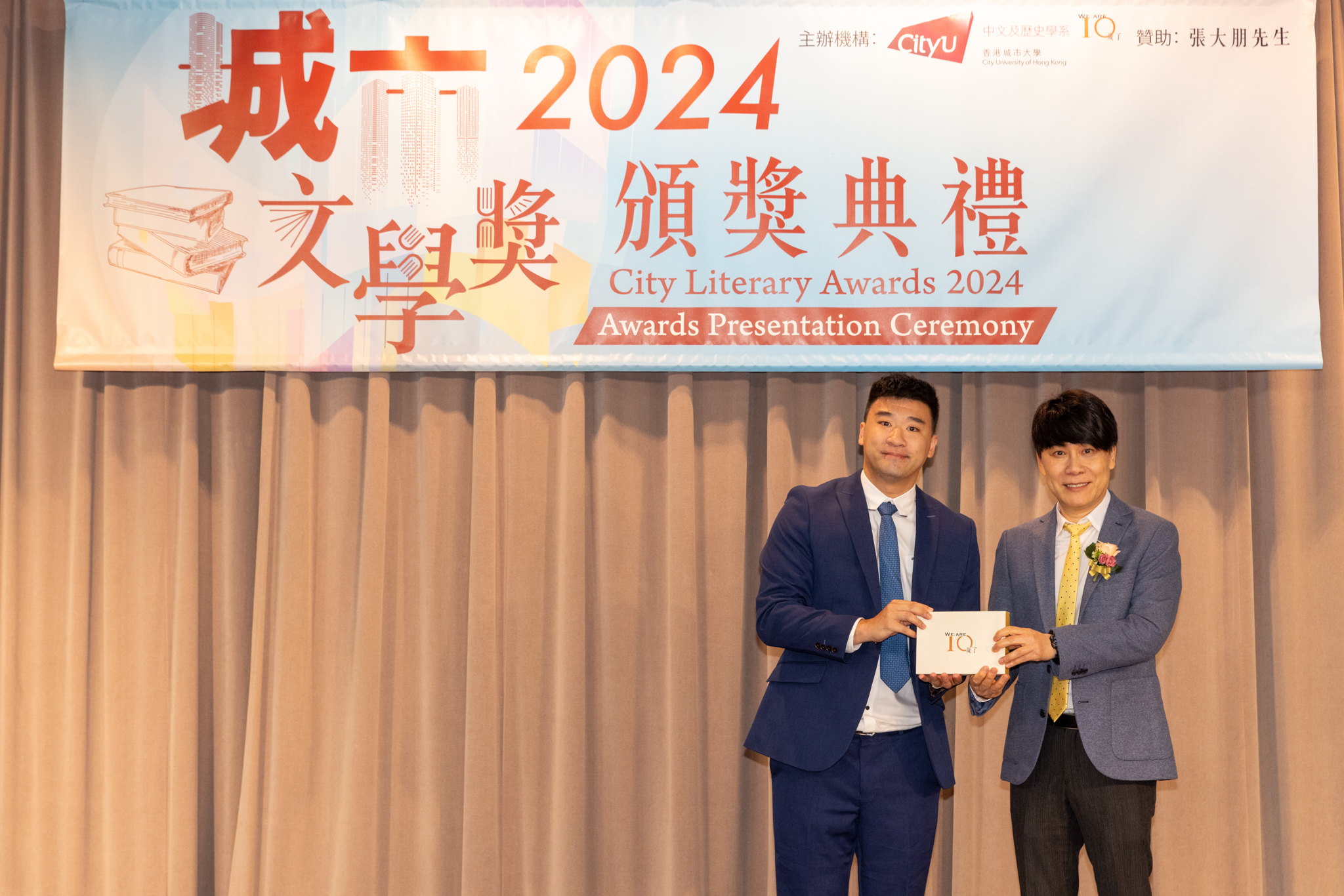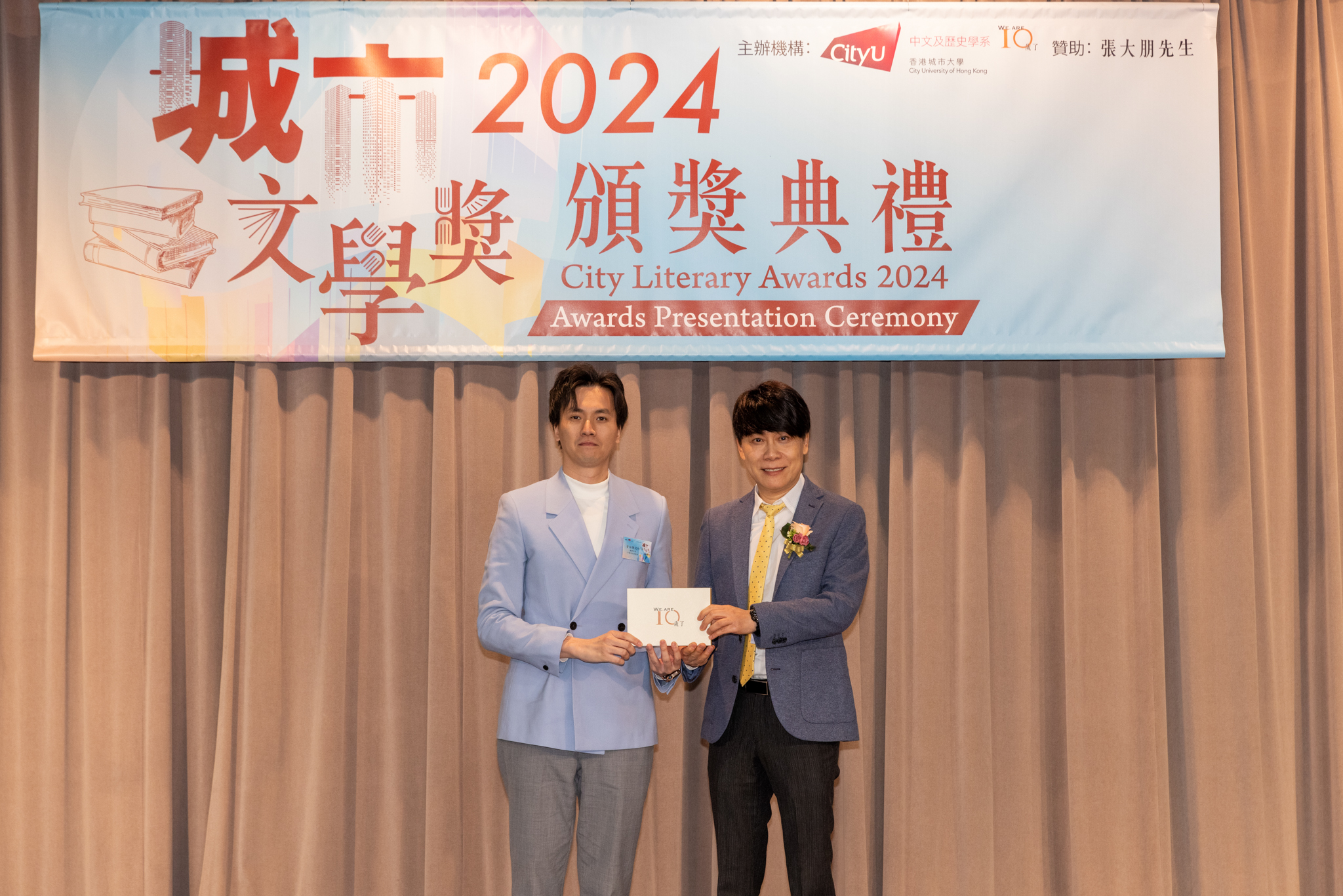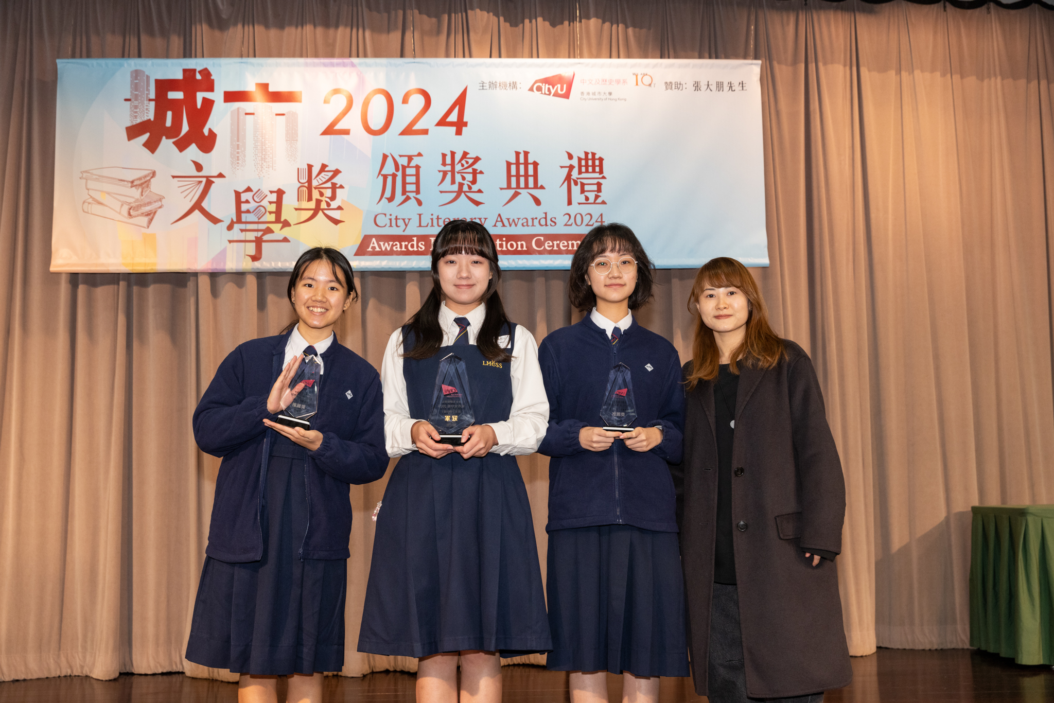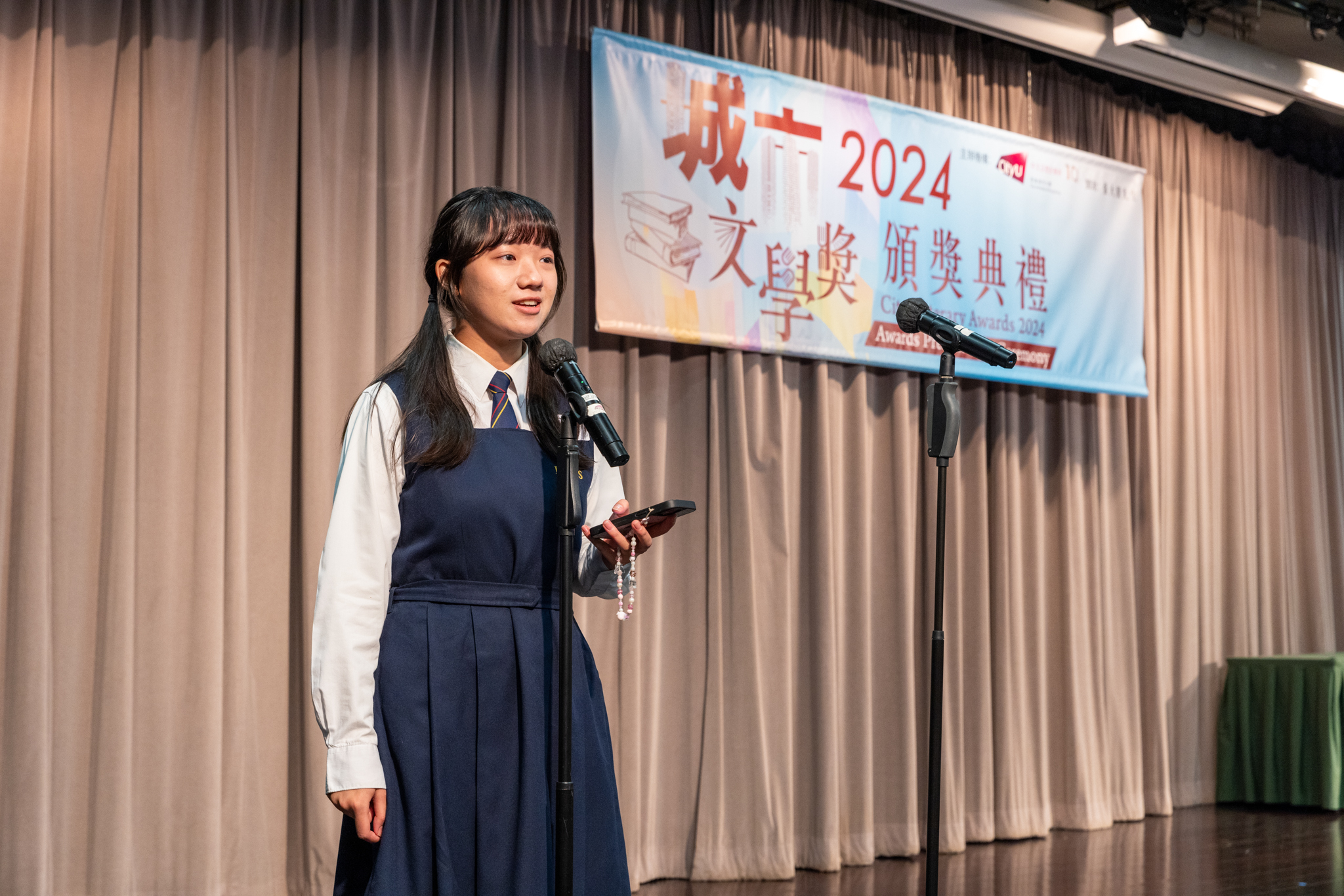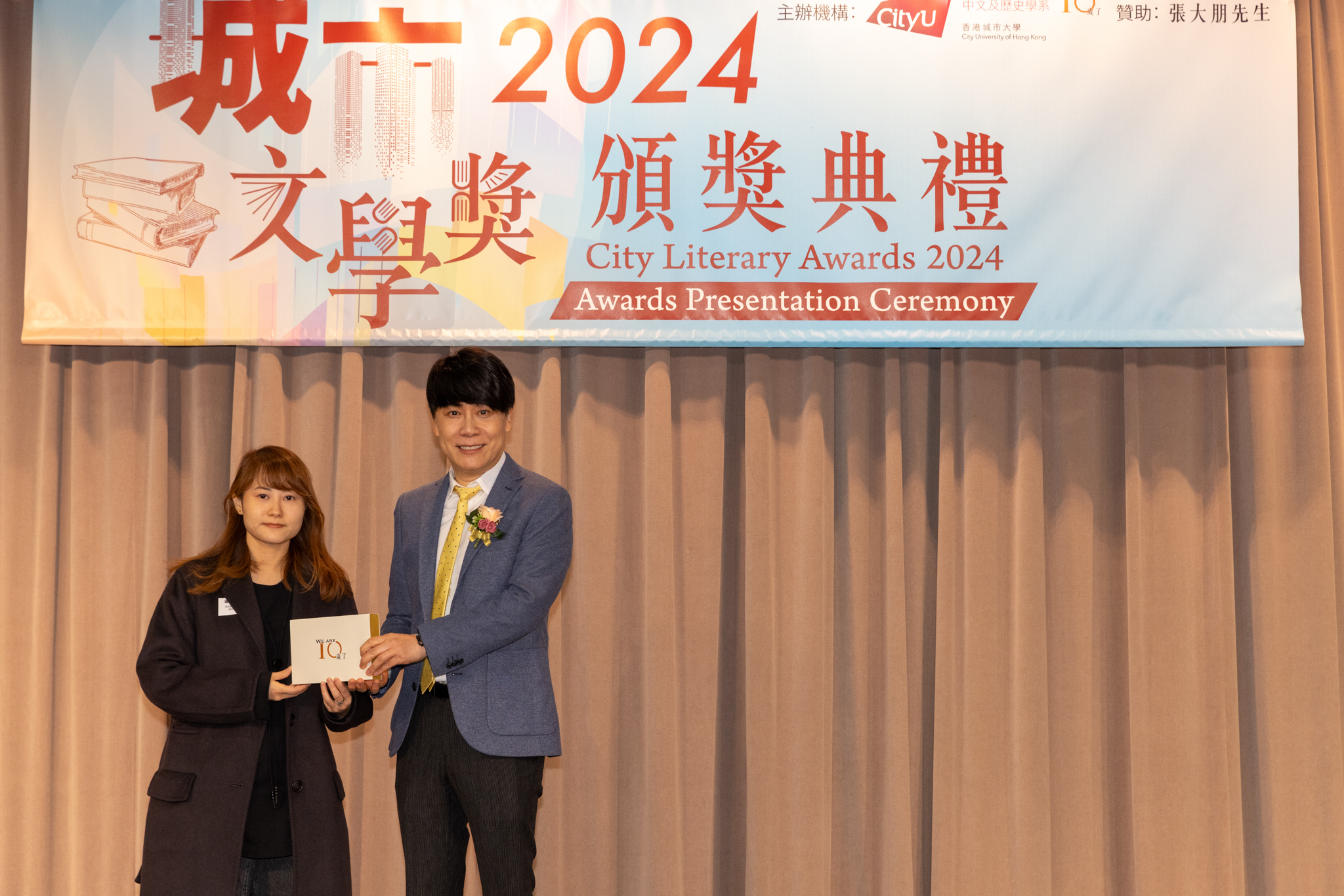 「城市文學獎2024」頒獎典禮已於12月14日圓滿舉行。我們衷心感謝香港城市大學協理學務副校長(學術事務)溫子堅講座教授、香港城市大學人文社會科學院院長何達基教授擔任主禮嘉賓。是次賽事共收到934篇參賽作品,大專組共計324篇;中學組方面,今屆有142所中學推薦學生參賽(每所學校於每類別獎項中最多只能推薦5篇優秀作品)。在頒獎典禮上,每個類別的冠軍分享了他們的寫作心得與獲獎感受,情感真摯、深刻動人。此外,出席典禮的各評審代表也抽出了寶貴時間即席分享各自的創作心得,為各青少年作家指點迷津,反響熱烈。我們期待「城市文學獎2026」再與大家見面,希望同學們的文學創作火苗生生不息,香港文學薪火相傳。