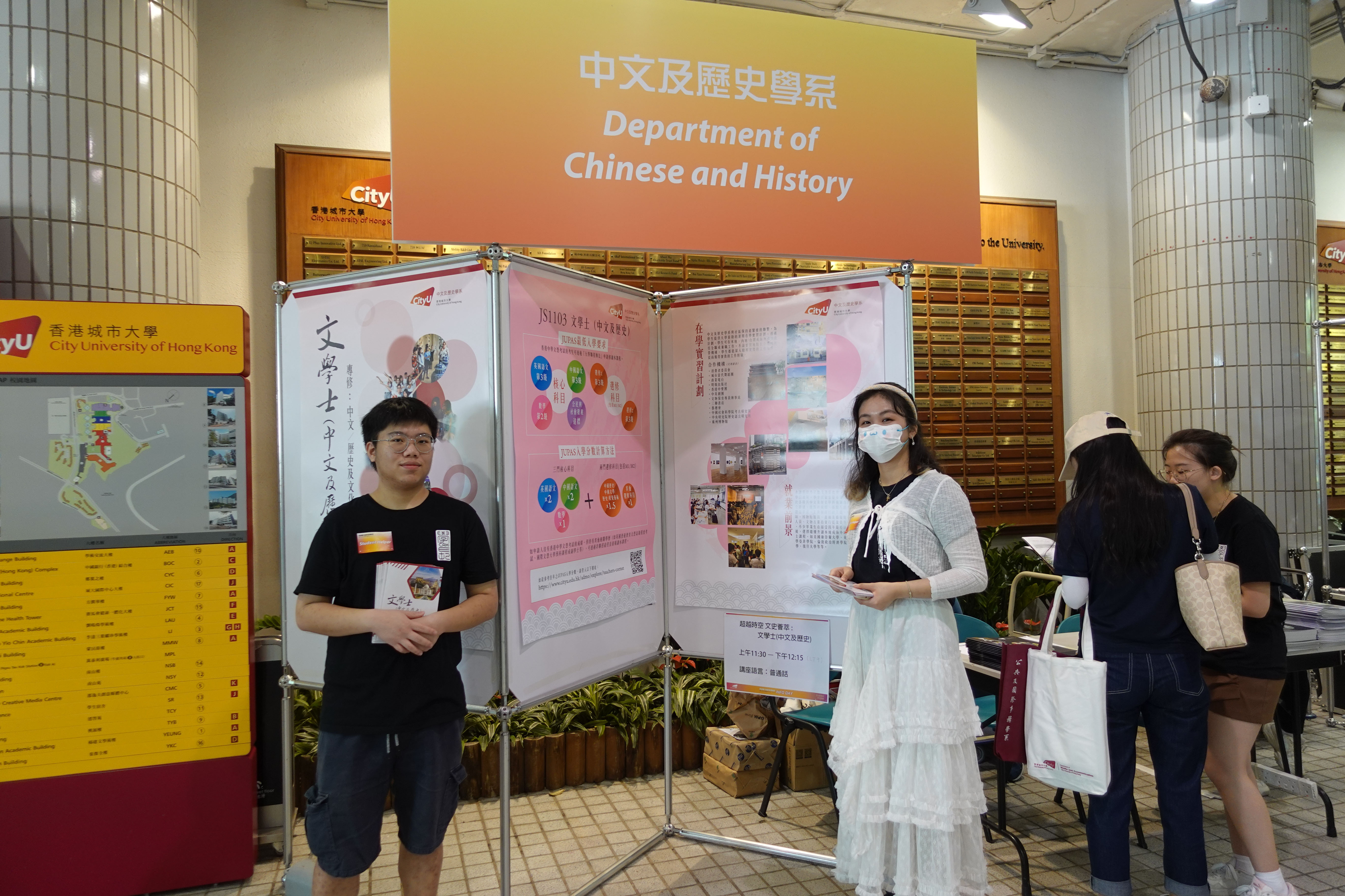 城大本科課程資訊日2025 講座 上午11:30 – 下午12:15 超越時空 文史薈萃 : 文學士 (中文及歷史) 講者:李怡文教授 (課程主任) 講座語言:普通話 地點: 楊建文學術樓四樓新科實業演講廳 (LT9) 講座 下午3:30 - 4:15 超越時空 文史薈萃 : 文學士 (中文及歷史) 講者:呂家慧教授 (招生主任) 講座語言:普通話 地點: 楊建文學術樓四樓新科實業演講廳 (LT9) 相集
