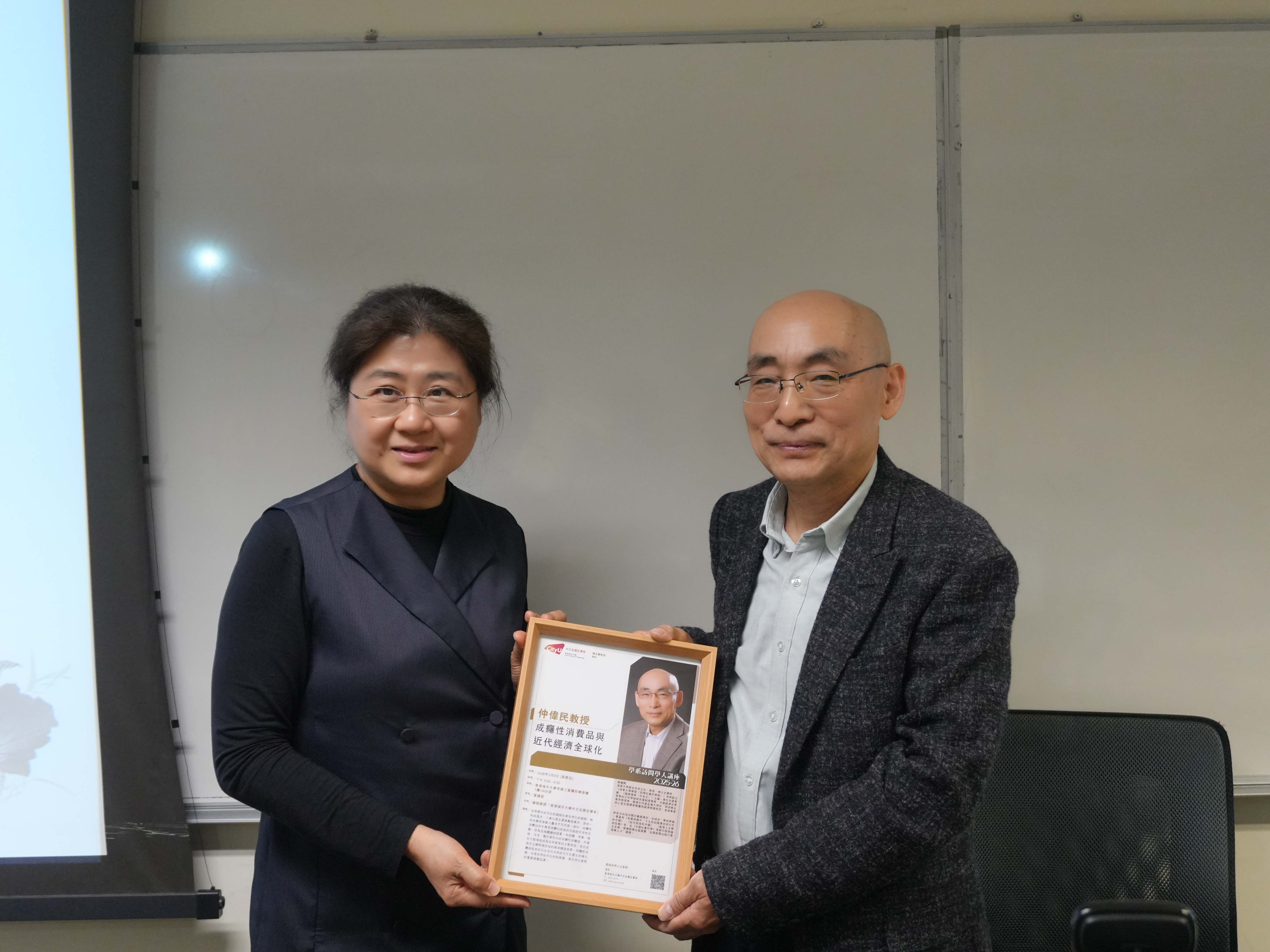 楊斌教授指出仲教授的講座結合宏觀與微觀,兼具秋風掃落葉的雄渾浩蕩與一葉而知秋的細緻敏銳。本系學生積極就東南亞國家政治腐敗、制度虛弱與當地成癮性消費品產業存在的關係;烟草在全球發達地區與欠發達地區的不同社會意涵;特定成癮性消費品文化對澳洲的影響等問題與仲教授進行討論。問答結束後,系主任程美寶教授向仲教授贈送紀念品,講座隨之在熱烈的掌聲中結束。